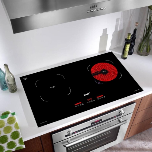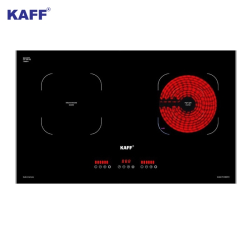Bếp điện từ đôi cảm ứng KAFF KF-EG901IH - Nhập khẩu nguyên chiếc từ CHLB Đức, thuộc dòng bếp từ cao cấp của thương hiệu KAFF - thiết bị nhà bếp nổi tiếng tại Đức, là sự kết hợp hoàn hảo giữa 1 bên bếp từ (sử dụng các bộ nồi chảo inox từ, tiết kiệm điện và đun nấu nhanh hơn) và 1 bên bếp điện hồng ngoại (không kén nồi và có thể nướng trực tiếp trên bề mặt bếp), Bếp có thiết kế 2 lò nấu độc lập phù hợp với không gian phòng bếp của người châu Á.