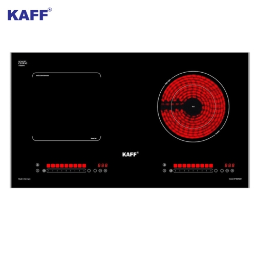 Bếp điện từ đôi cảm ứng KAFF KF-EG902IH - Nhập khẩu nguyên chiếc từ CHLB Đức, thuộc dòng bếp từ cao cấp của thương hiệu KAFF - thiết bị nhà bếp nổi tiếng tại Đức, là sự kết hợp hoàn hảo giữa 1 bên bếp từ (sử dụng các bộ nồi chảo inox từ, tiết kiệm điện và đun nấu nhanh hơn) và 1 bên bếp điện hồng ngoại (không kén nồi và có thể nướng trực tiếp trên bề mặt bếp), Bếp có thiết kế 2 lò nấu độc lập phù hợp với không gian phòng bếp của người châu Á.