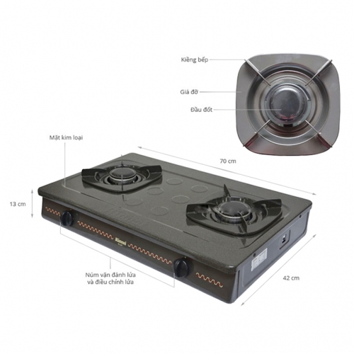 | Chất liệu mặt bếp | Thép phủ men không gỉ |
