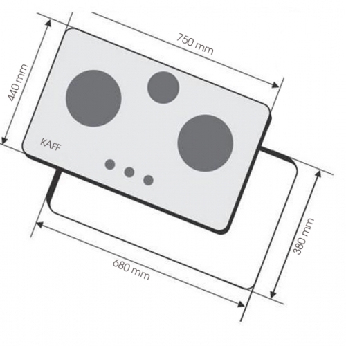 Kích thước lắp đặt bếp gas âm 3 lò KAFF KF-690, mẫu cảm ứng ngắt gas tự động