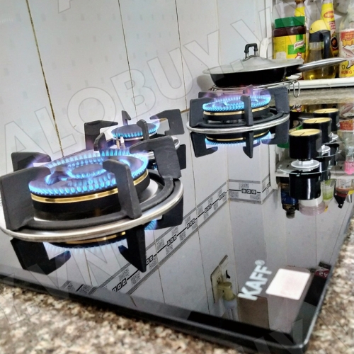 + Bếp gas âm 3 lò KAFF KF-690 sử dụng Bộ chia lửa bằng đồng tiết kiệm gas, thiết kế tinh xảo. Mâm cho ngọn lửa xanh, đẹp mắt. Tuy nhiên khi nấu nhiều muối, dầu mỡ cần vệ sinh mâm thường xuyên, tránh cong vênh, ăn mòn bởi chi phí thay mâm khá đắt.
