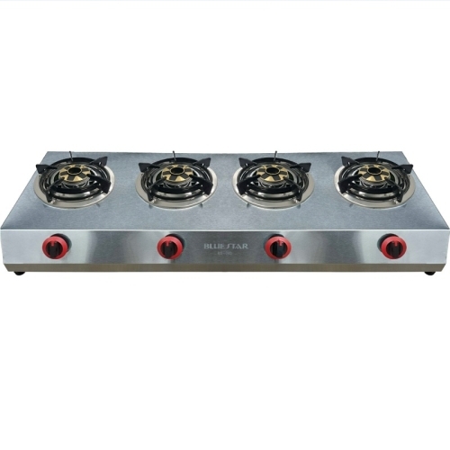 - Bếp gas công nghiệp 4 lò điếu gang Bluestar BS-04SV với mặt bếp bằng inox, chịu lực và chịu nhiệt cao, dễ dàng vệ sinh. Thân được gia công dạng khung , kết cấu vững chắc, tuổi thọ cao.