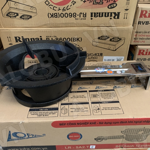 với độ tính năng vượt trội, thiết kế ngọn lửa lớn 3 vòng lửa. - Bếp khè gas công nghiệp LOFRA LR-5A2TC (Cán trung) Toàn thân bằng gang đúc nguyên khối, Bộ hòa khí ngoại nhập, siêu bền. Hoa sen bằng gang đúc nguyên khối Trọng lượng: 7,5kg Trang bị hệ thống đánh lửa Magneto an toàn, dễ sử dụng, phù hợp với tất cả gian bếp