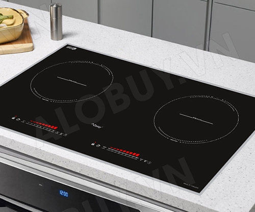 - Trên màn hình hiển thị 2 lò nấu, với bếp từ người dùng phải đặt dụng cụ nấu (thích hợp) lên trước, sau mới nhấn nút điều khiển tăng công suất