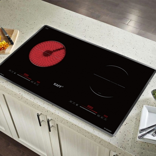 Bếp từ đôi hồng ngoại cảm ứng KAFF KF-SD300IC thuộc dòng bếp điện từ cao cấp của thương hiệu thiết bị nhà bếp nổi tiếng tại Đức KAFF nhập khẩu nguyên chiếc từ MALAYSIA, là sự kết hợp hoàn hảo giữa 1 bên bếp từ (sử dụng các bộ nồi chảo inox từ, tiết kiệm điện và đun nấu nhanh hơn) và 1 bên bếp điện hồng ngoại (không kén nồi và có thể nướng trực tiếp trên bề mặt bếp) giúp cho cuộc sống của bạn thuận tiện hơn.