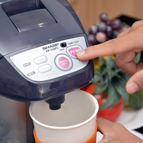 Bình thủy điện Sharp KP-Y32PV, Dòng nhập nguyên chiếc từ Sharp Thái Lan, Dung tích 3.0 Lít, Công suất 700W trang bị nút điều khiển nhấn lấy nước bằng bơm điện tử. Bạn chỉ cần ấn nút trên bảng điêu khiển nhẹ nhàng là có thể lấy được lượng nước bạn muốn