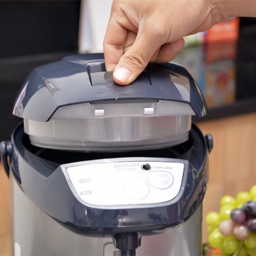 Bình thủy điện Sharp KP-Y32PV, Dòng nhập nguyên chiếc từ Sharp Thái Lan, Dung tích 3.0 Lít, Công suất 700W mở nắp dễ dàng với nút nhấn ngay trên nắp bình.