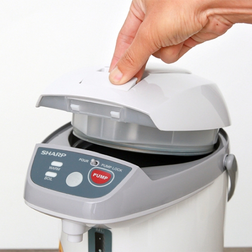 Bình thủy điện Sharp KP-Y32PV-CU, Dòng nhập nguyên chiếc từ Sharp Thái Lan, Dung tích 3.0 Lít, Công suất 700W mở nắp dễ dàng với nút nhấn ngay trên nắp bình.