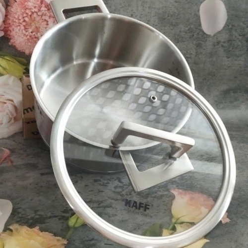 Một điểm khác đáng chú ý của bộ nồi 5 món Kaff KF-DIMOND09304 Luxury đó là lựa chọn chất liệu kính cường lực thay vì chất liệu inox thường. Sử dụng kính sẽ giúp bạn dễ dàng theo dõi tiến trình nấu cũng như sự thay đổi của thức ăn bên trong nồi. Không phải mở nắp ra như các loại nồi khác, nên không ảnh hưởng đến chất lượng và thời gian nấu của món ăn.