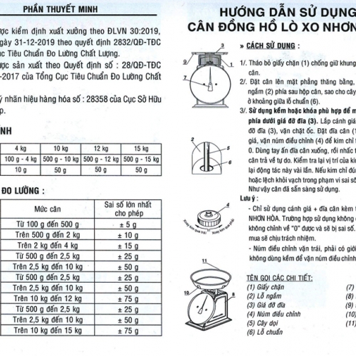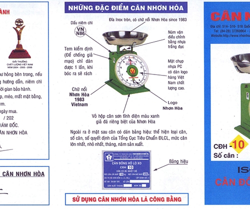 Phiếu bảo hành hợp lệ và những đặc điểm nhận biết Cân đồng hồ lò xo Nhơn Hòa 10Kg CĐH-10 chính hãng