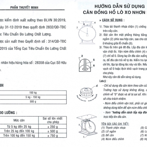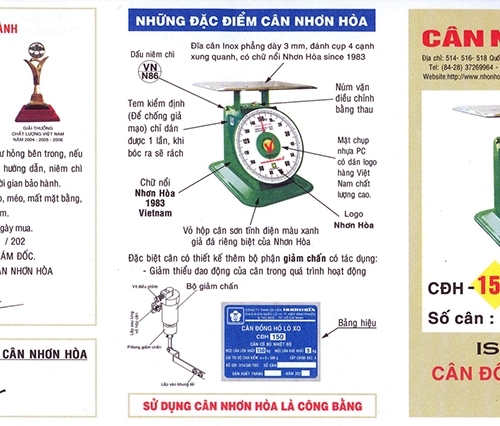 Cân đồng hồ lò xo Nhơn Hòa 150Kg CĐH-150, thương hiệu Việt Nam đã nhiều năm liền đạt tiêu chuẩn hàng Việt Nam chất lượng cao, IS 9001-2000.Nhiều chứng nhận về tiêu chuẩn kỹ thuật của cục sỡ hữu trí tuệ. Cân có độ chính xác cao, độ bền cơ học tốt với các yếu tố này cân Nhơn Hòa đã và đang chiếm lĩnh thị trường cân Việt Nam và đã xóa dần bóng dáng cân có xuất xứ Trung Quốc không chính xác và dể hư hỏng.