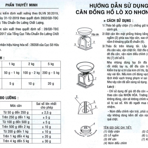 Phiếu bảo hành hợp lệ và những đặc điểm nhận biết Cân đồng hồ lò xo Nhơn Hòa 1Kg CĐH-1 chính hãng