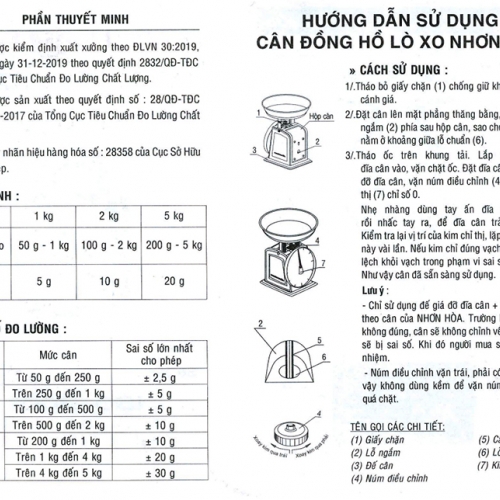 Phiếu bảo hành hợp lệ và những đặc điểm nhận biết Cân đồng hồ lò xo Nhơn Hòa 5Kg CĐH-5 chính hãng