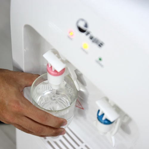 Cây nước nóng lạnh FujiE WD1105E tự đun nước nóng và làm lạnh, bạn chỉ cần cắm điện và bật công tắc phía sau, máy sẽ tự động đun. Khi đủ nhiệt độ, máy sẽ tự động dừng.Đặt bình nước lên Cây nước và bật 2 công tác lạnh/nóng phía sau máy