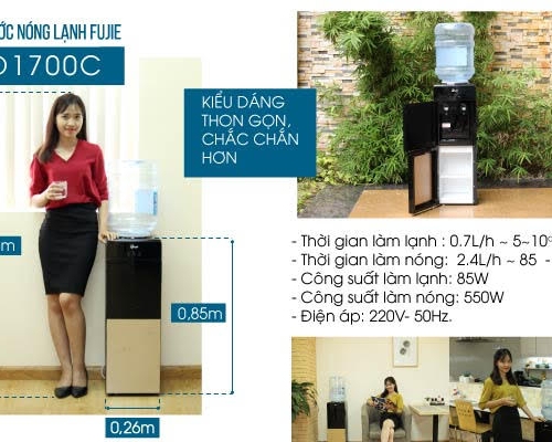 Cây nước nóng lạnh Fujie WD1700C - Thương hiệu đến từ Nhật Bản , với phương pháp làm lạnh nhanh bằng Block được sản xuất chuyên dùng để phục vụ cho nhu cầu ăn uống, sử dụng nước nóng, nước lạnh thuận tiện và nhanh chóng cho tất cả mọi người; là một sản phẩm không thể thiếu trong các cơ quan, văn phòng công ty, bệnh viện, khách sạn... cho tới các hộ gia đình. Với công nghệ hiện đại từ Nhật Bản, thiết kế tinh tế, đa dạng về mẫu mã, màu sắc; Cây nước nóng lạnh Fujie là sự lựa chọn tối ưu, mang đến sự an tâm về uy tín, chất lượng, luôn nhận được sự quan tâm và tin dùng của rất nhiều khách hàng.