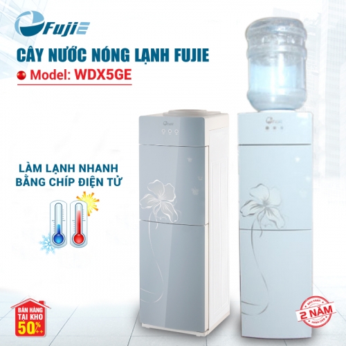 Cây nước nóng lạnh Fujie WDX5GE - Thương hiệu đến từ Nhật Bản , với phương pháp làm lạnh bằng Chip điện tử được sản xuất chuyên dùng để phục vụ cho nhu cầu ăn uống, sử dụng nước nóng, nước lạnh thuận tiện và nhanh chóng cho tất cả mọi người; là một sản phẩm không thể thiếu trong các cơ quan, văn phòng công ty, bệnh viện, khách sạn... cho tới các hộ gia đình. Với công nghệ hiện đại từ Nhật Bản, thiết kế tinh tế, đa dạng về mẫu mã, màu sắc; Cây nước nóng lạnh Fujie là sự lựa chọn tối ưu, mang đến sự an tâm về uy tín, chất lượng, luôn nhận được sự quan tâm và tin dùng của rất nhiều khách hàng.
