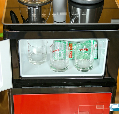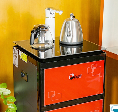 Điểm đặc biệt của sản phẩm này là có kèm theo ấm đun nước nóng và ấm pha trà được nấu sẵn trên cây nước rất tiện lợi