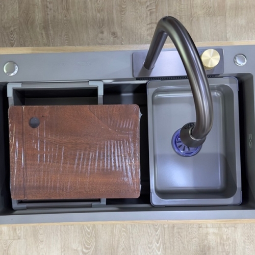Chậu rửa bát là một trong những sản phẩm thiết yếu cho không gian căn bếp trong thời buổi hiện nay. Alobuy xin giới thiệu chậu rửa bát inox 304 liền vòi Kaff KF-UM7546B là mẫu chậu mới nhất thiết kế thêm dòng chảy thác nước mới lạ theo xu hướng hiện đại rất thuận tiện cho việc rửa chén, lòng chậu vô cùng rộng và thoải mái thao tác khi rửa. Chậu có kích thước form chuẩn, được đa phần người dùng lựa chọn.