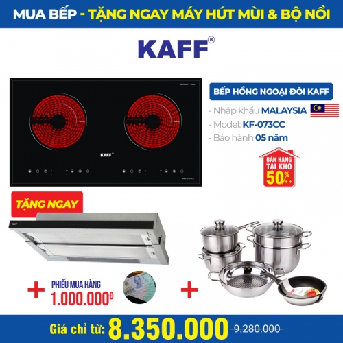 COMBO Trọn bộ Bếp từ đôi hồng ngoại KAFF KF-073IC - Dòng Bếp Nhập MALAYSIA - INVERTER tiết kiệm điện