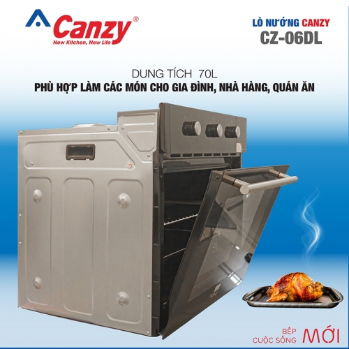 Lò nướng đối lưu lắp âm tủ CANZY CZ-06DL có Dung tích của lò là 70L. Khoang lò được tráng men chịu nhiệt cao giúp giữ nhiệt độ, cách nhiệt và không bám dính, làm cho công việc vệ sinh sau khi dùng lò hết sức đơn giản và dễ dàng. Bề mặt đáy trong khoang lò nướng được làm hơi lõm và có độ dốc để dầu, mỡ trong thực phẩm khi nướng. Lò có đèn nội thất bên trong, chiếu sáng cho khu vực nướng.