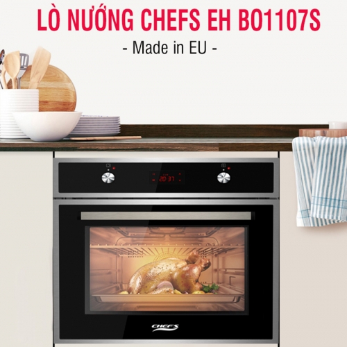 - Với Lò nướng đối lưu lắp âm tủ CHEFS EH-BO1107S Made In Thổ Nhĩ Kỳ này bạn có thể làm các món khoái khẩu như thịt nướng, món gà nướng mật ong, hay tất cả loại bánh nhanh chóng, tiện lợi, thức ăn luôn chín vàng đều không bị cháy khét. Lò nướng Chefs EH-BO1107S được sản xuất và nhập khẩu nguyên chiếc từ Thổ Nhĩ Kỳ, phân phối chính hãng tại ALOBUY Việt Nam