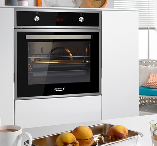Lò nướng đối lưu lắp âm tủ CHEFS EH-BO1107S Made In Thổ Nhĩ Kỳ có Bộ điều khiển cảm ứng hiện đại, màn hình kỹ thuật số hiển thị nhiệt độ nướng giúp người dùng dễ dàng sử dụng. Núm điều khiển tròn tinh tế dạng pop – up điều chỉnh linh hoạt các chức năng nấu. Cũng như các lò nướng cao cấp khác, Chefs EH-BO1107S có chức năng hẹn giờ thông minh. Thao tác dễ dàng, đặt thực phẩm vào bên trong, chọn công suất và chỉnh thời gian làm chín. Lò sẽ tự hoạt động còn bạn sẽ có thêm thời gian nấu các món ăn khác.
