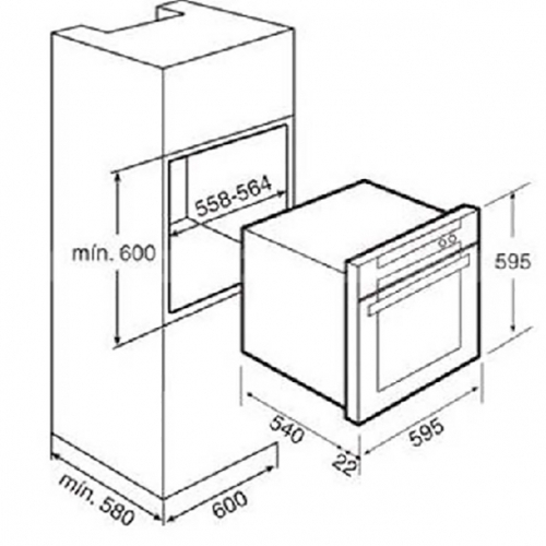 ( cao x rộng x sâu)595 x 595 x 540 mm |