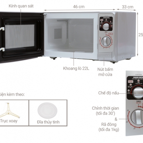 ƯU ĐIỂM NỔI BẬT CỦA LÒ VI SÓNG SHARP R-20A1(S)VN, DUNG TÍCH 22L, CÔNG SUẤT 800W