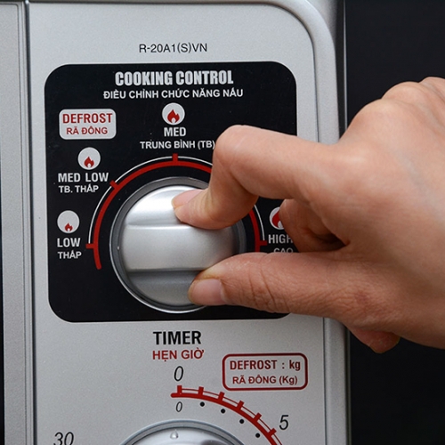 Nút điều khiển cơ kiểu vặn đơn giản, dễ sử dụng: Lò vi sóng Sharp R-20A1(S)VN, Dòng nhập nguyên chiếc từ Sharp Thái Lan, Dung tích 22 Lít, Công suất 800W với 3 chức năng Nấu, Hâm và Rã đông thực phẩm Là loại lò vi sóng có nút điều chỉnh bằng cơ học bằng cách người dùng xoay nút điều chỉnh để chọn các chế độ hâm nóng, nấu, rã đông, nướng thức ăn và thời gian, Có hiển thị hướng dẫn bằng tiếng Việt, Sản phẩm được thiết kế đơn giản, dễ sử dụng