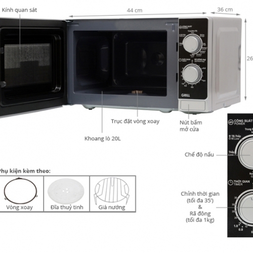 + Lò vi sóng ( Lò Vi ba) nút cơ có NƯỚNG, Dung tích 20 Lít