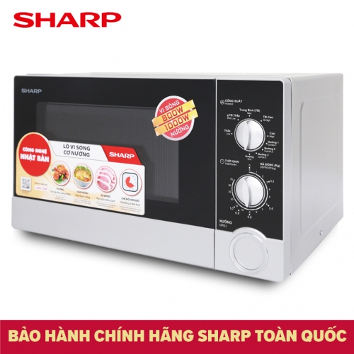 Lò vi sóng Sharp R-G302VN-S Dòng Vi sóng có Nướng 2 trong 1, Dung tích 23 Lít, Công suất vi sóng 800W, Nướng 1000W với 4 chức năng Nướng, Nấu, Hâm và Rã đông thực phẩm kết hợp