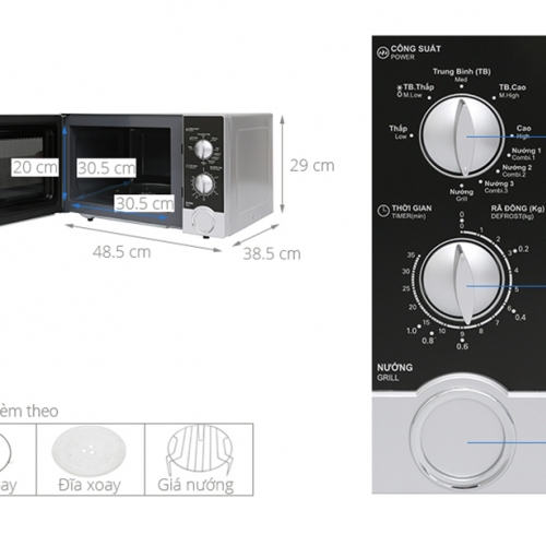+ Lò vi sóng ( Lò Vi ba) nút cơ có NƯỚNG, Dung tích 23 Lít