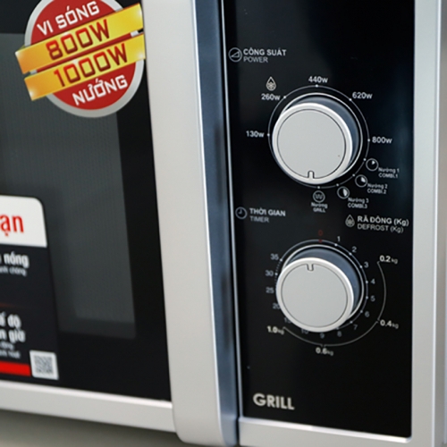 + 4 chức năng Nướng, Nấu, Hâm và Rã đông thực phẩm với 5 mức công suất, nhiều chương trình nấu tự động