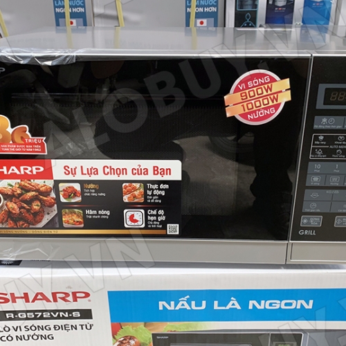 Lò vi sóng Sharp R-G572VN-S Dòng Vi sóng có Nướng 2 trong 1, Dung tích 25 Lít, Công suất vi sóng 900W, Nướng 1000W với 4 chức năng Nướng, Nấu, Hâm và Rã đông thực phẩm kết hợp mẫu Lò Vi ba bán chạy nhất tại hệ thống siêu thị và cửa hàng gia dụng trên toàn quốc