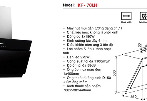 Máy hút mùi bếp gắn tường chữ T 7 tấc KAFF KF-70LH Dòng nút điều khiển cảm ứng