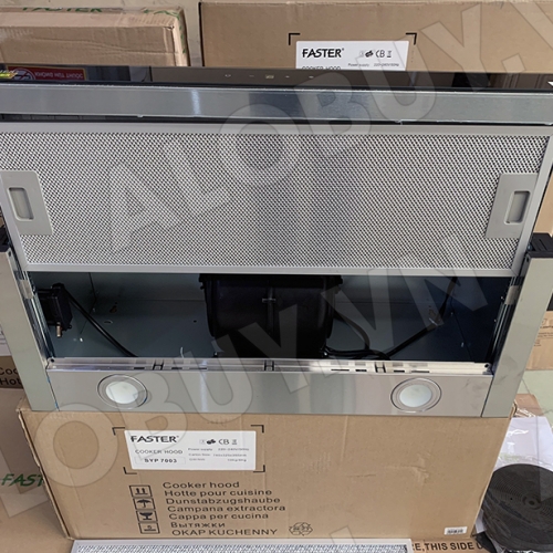 Máy hút mùi bếp âm tủ 6 tấc FASTER SYP 6003 (Nút cảm ứng) mặt trước là kính cường lực trang bị nút nhấn cảm ứng