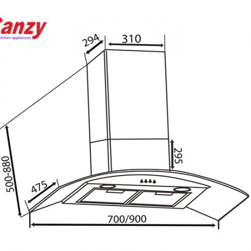 Máy hút mùi kính bếp kính cong 9 tấc CANZY CZ-90D2