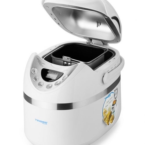 Với sự trợ giúp của máy làm bánh mì Tiross TS820, bạn sẽ dễ dàng khi tự làm những ổ bánh ngon miệng và đúng theo sở thích. Máy gồm 12 chức năng làm bánh, 3 mức điều chỉnh màu bánh, chức năng hẹn giờ lên đến 13 tiếng và giữ ấm 60 phút sau khi bánh chín. Bạn sẽ dễ dàng lựa chọn các chức năng trên thông qua màn hình LCD và các nút bấm. Trong mỗi sản phẩm máy làm bánh mì Tiross TS820 đều đi kèm hướng dẫn sử dụng và công thức làm bánh đầy đủ. Bạn chỉ việc chuẩn bị nguyên liệu bột và phụ phẩm, pha chế theo từng công thức để có mẻ bánh khác nhau.