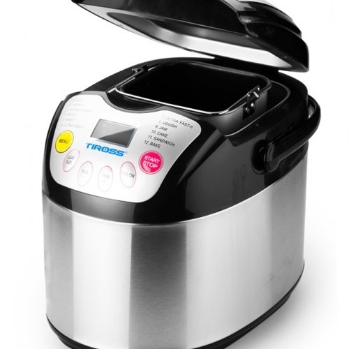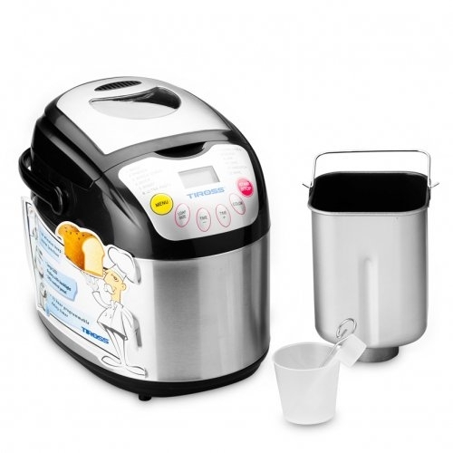 Máy làm bánh Tiross TS821 gồm 12 chức năng làm bánh, 3 mức điều chỉnh màu bánh, chức năng hẹn giờ lên đến 13 tiếng và giữ ấm 60 phút sau khi bánh chín. Thân máy bằng inox siêu bền và mang lại vẻ sang trọng. Trong mỗi sản phẩm máy làm bánh Tiross TS821 đều đi kèm hướng dẫn sử dụng và công thức làm bánh đầy đủ. Bạn chỉ việc chuẩn bị nguyên liệu bột và phụ phẩm, pha chế theo từng công thức để có mẻ bánh khác nhau.