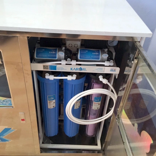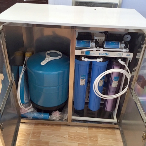 Máy lọc nước RO bán công nghiệp KAROFI KB50 (Tủ inox, 6 cấp lọc, lọc được 50 lít nước / giờ phù hợp với những cơ quan, tổ chức từ 50 - 200 người) của hãng điện gia dụng hàng đầu KAROFI - Chuẩn mực mới nhất của làm nước sạch và an toàn.Các nguồn nước đầu vào có thể nhiễm bẩn nhưng sau khi qua hệ thống lọc nước sẽ đều cho ra nước tinh khiết với tất cả những chất bẩn, chất độc hại bị loại bỏ hoàn toàn, mang lại sự an tâm cao cho người sử dụng.