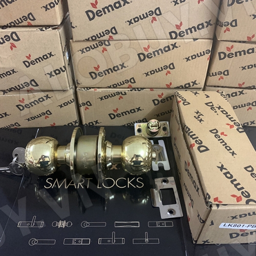 Ổ Khóa cửa tay nắm tròn Demax LK801 PB Loại khóa này có ưu điểm là dễ sử dụng và dễ lắp ráp nên được người tiêu dùng Việt Nam ưa chuộng