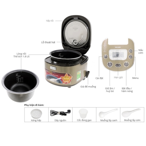 Nồi cơm điện tử Sharp KS-TH18-GL, Dung tích 1,8 Lít thích hợp dùng cho gia đình 4 - 6 người lớn, Lòng nồi hợp kim nhôm dày tráng men chống dính, Bảng điều khiển điện tử và nhiều menu nấu sẵn giúp bạn dễ dàng điều chỉnh các chức năng và theo dõi quá trình nấu của nồi.., Các mẫu nồi cơm điện tử Sharp phần lớn có kiểu thiết kế trông sang trọng và hiện đại, với gam màu chủ yếu là màu trắng. Ngoài ra, vỏ và lòng nồi hầu như sử dụng chất liệu tốt và dày nên việc giữ ấm cơm được kéo dài lâu hơn.