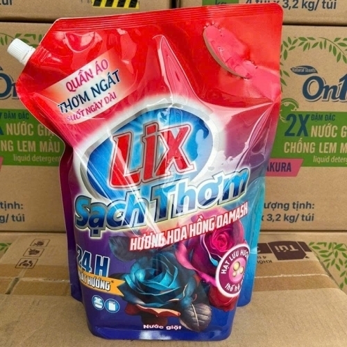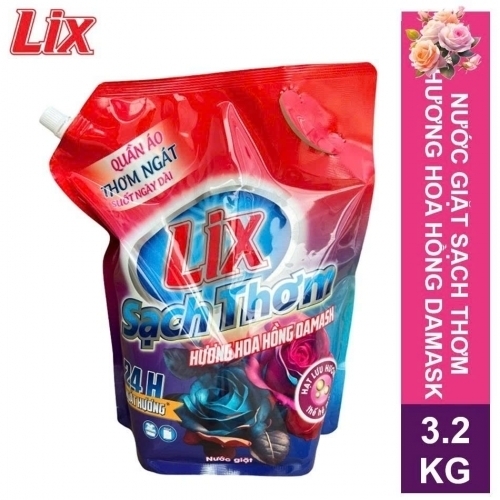 Nước Giặt LIX Sạch Thơm TÚI 3.2 KG - Hương Hoa Hồng Damask - Mã 18404- Hàng Chính Hãng