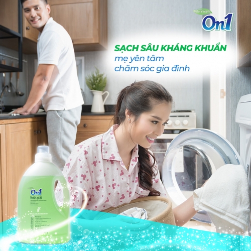 Từ công thức kháng khuẩn hoàn toàn mới, Nước giặt xả 2 trong 1 On1 tự tin giúp mẹ san sẻ nỗi lo về vấn đề trên trên quần áo, loại bỏ bẩn và ngăn ngừa vi khuẩn thật dễ dàng trong 1 bước giặt