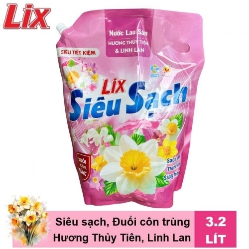 Nước Lau Sàn LIX TÚI 3.2 Lít - Hương Thủy Tiên và Linh Lan - Mã 15302