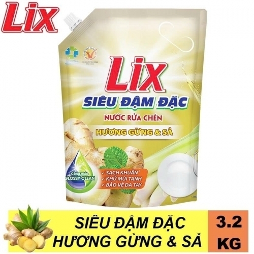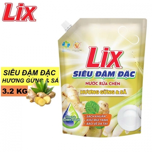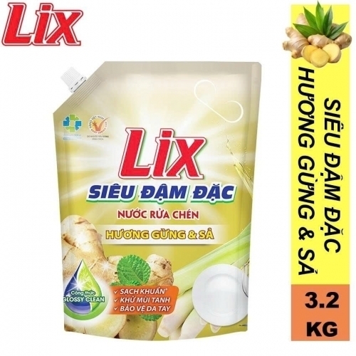 Nước Rửa Chén LIX Hương Gừng Và Sả TÚI 3.2KG - Mã 21202