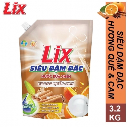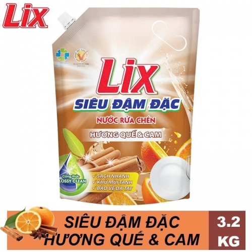 Nước Rửa Chén LIX Siêu Đậm Đặc Hương Quế Và Cam TÚI 3.2KG - Mã 21402