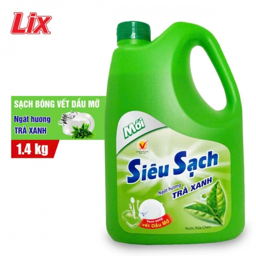 Nước Rửa Chén LIX Siêu Sạch Hương Trà Xanh CHAI 1.4KG - Mã N8120