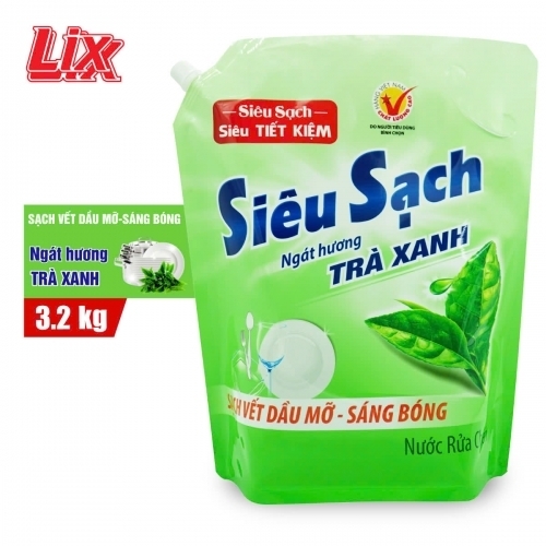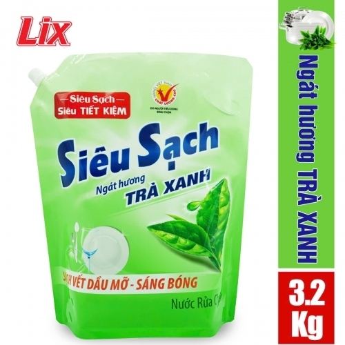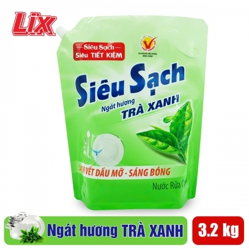 Nước Rửa Chén LIX Túi 3.2KG Siêu Sạch Hương Trà Xanh - N8118