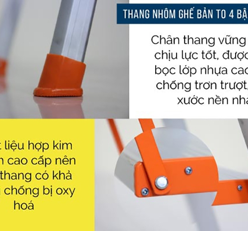 – Dưới mỗi chân thang được bọc lớp cao su dày chống trượt, đây cũng là một trong những đặc điểm nổi bật, là một trong những lựa chọn hàng đầu của người tiêu dùng.
